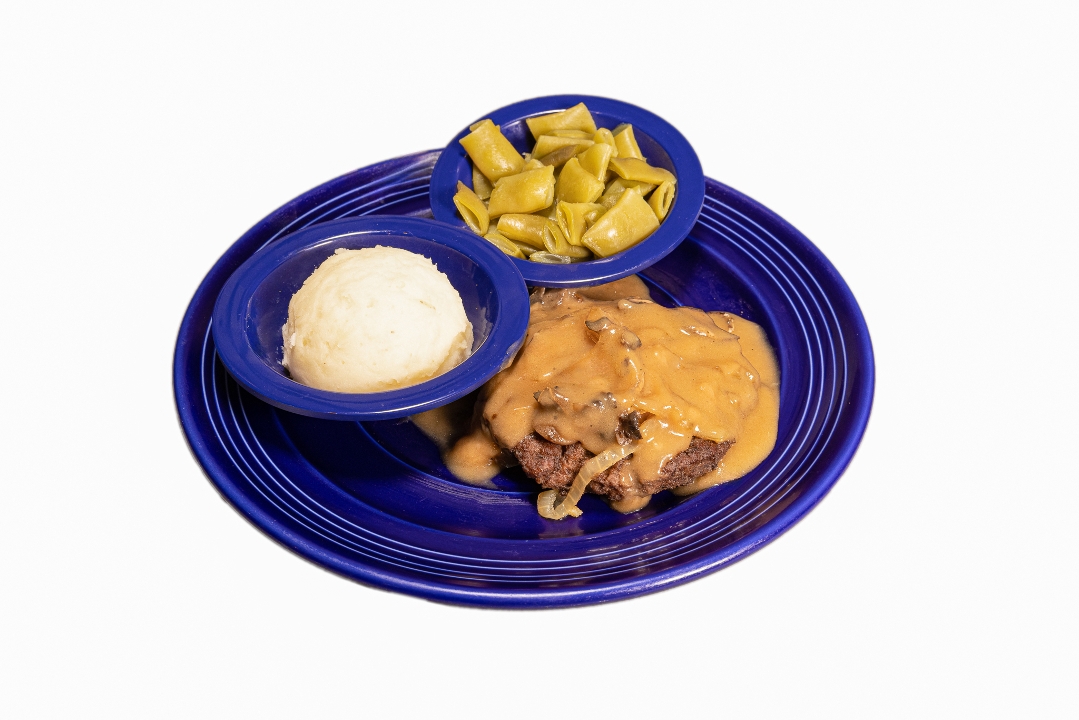 chopped steak smothered in sautéed onions, mushrooms and gravy